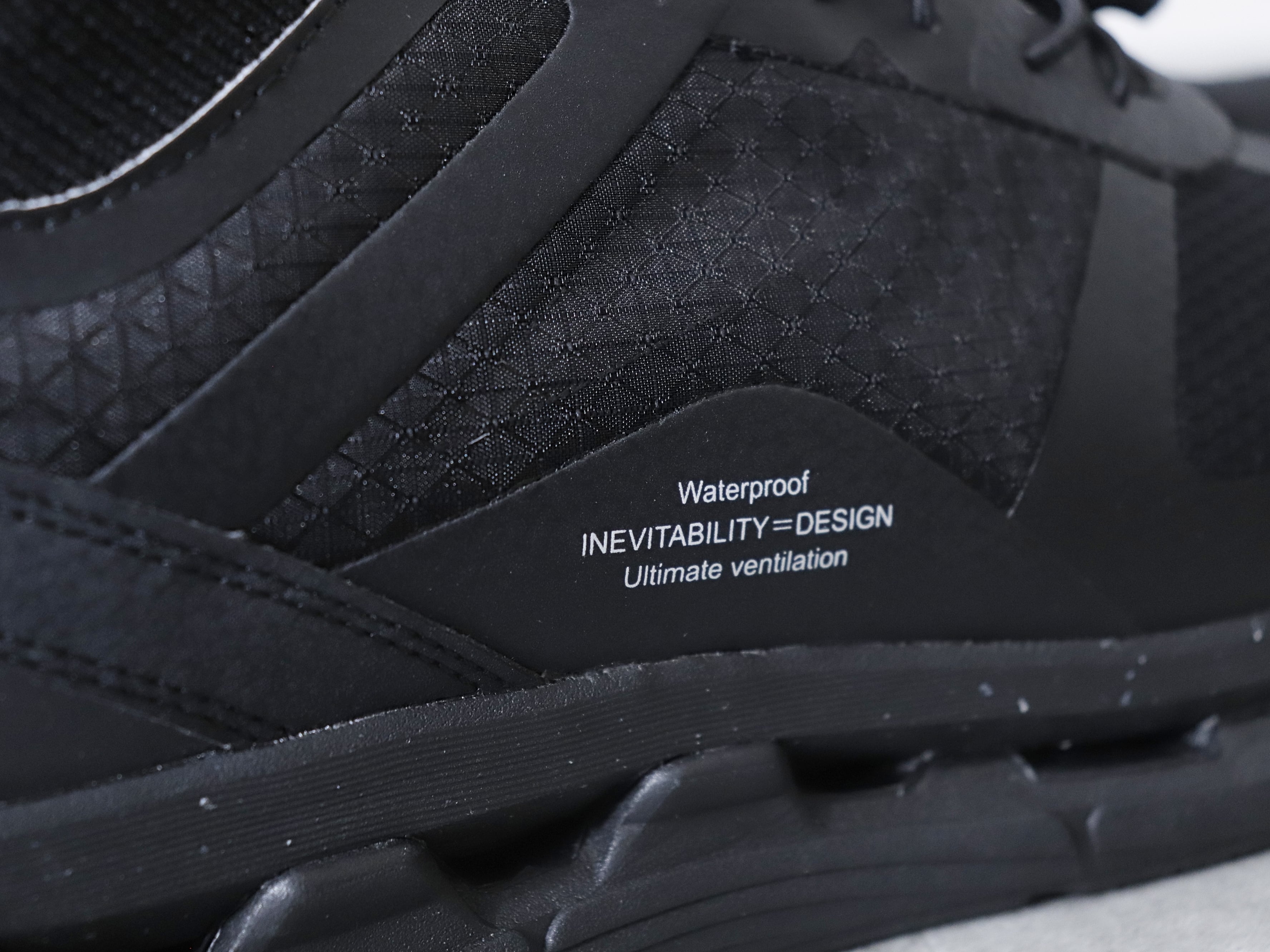 アッパー(甲)材の素材全てに強力な防水加工が施されているだけでなく、